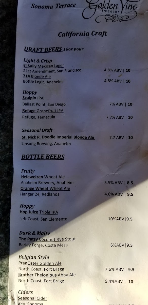 With a flow of refreshing draft beers, including Creature Comforts Albatross NZ Pilsner and Green Cheek Beer Co WC IPA, Sonoma Terrace offers a fantastic drink selection to accompany your meal. If you’re in the mood for something non-alcoholic, the Athletic Brewing Run Wild Non-Alcoholic IPA will quench your thirst without the buzz.